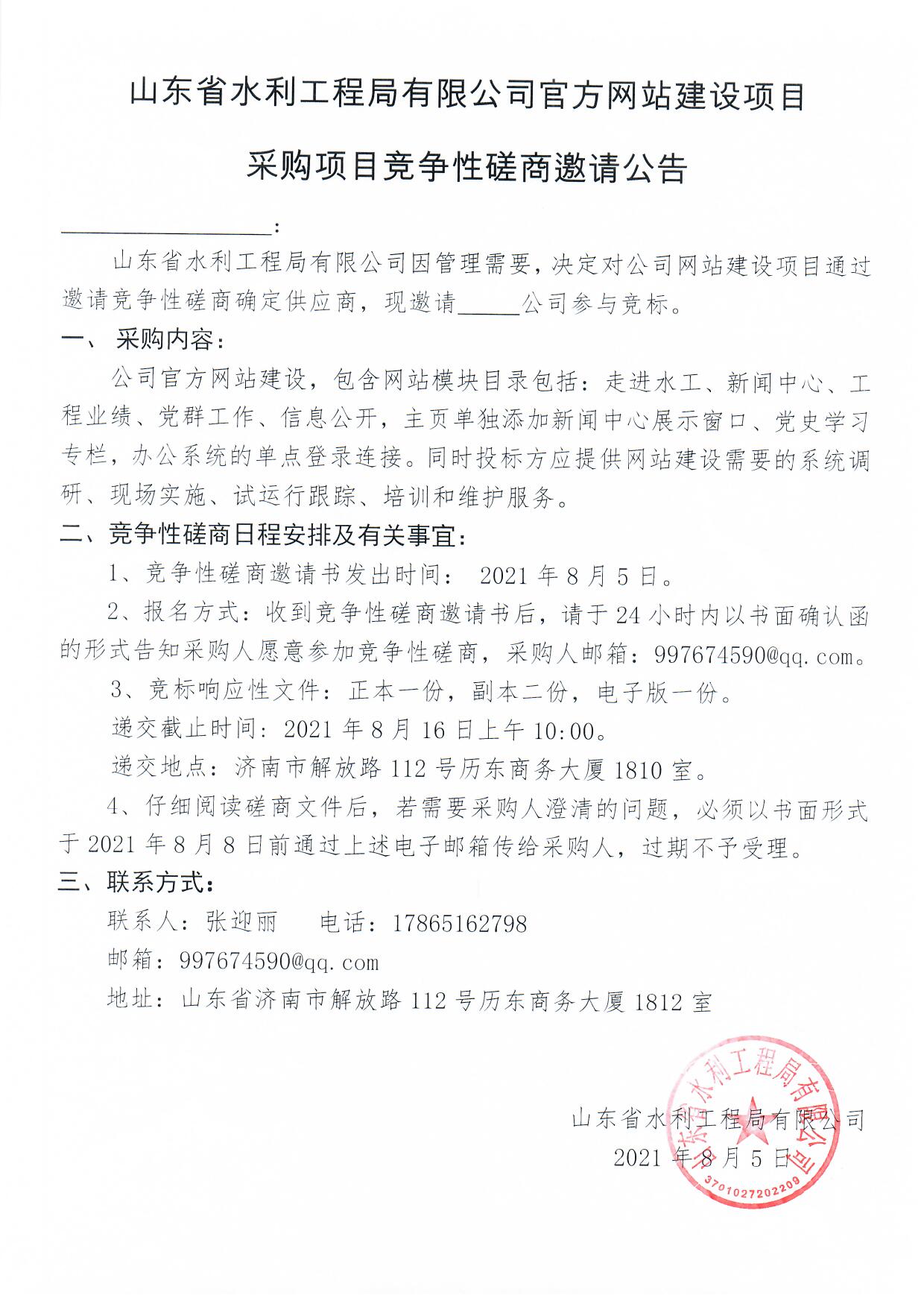 山東省水利工程局有限公司官方網(wǎng)站建設項目采購項目競爭性磋商邀請公告