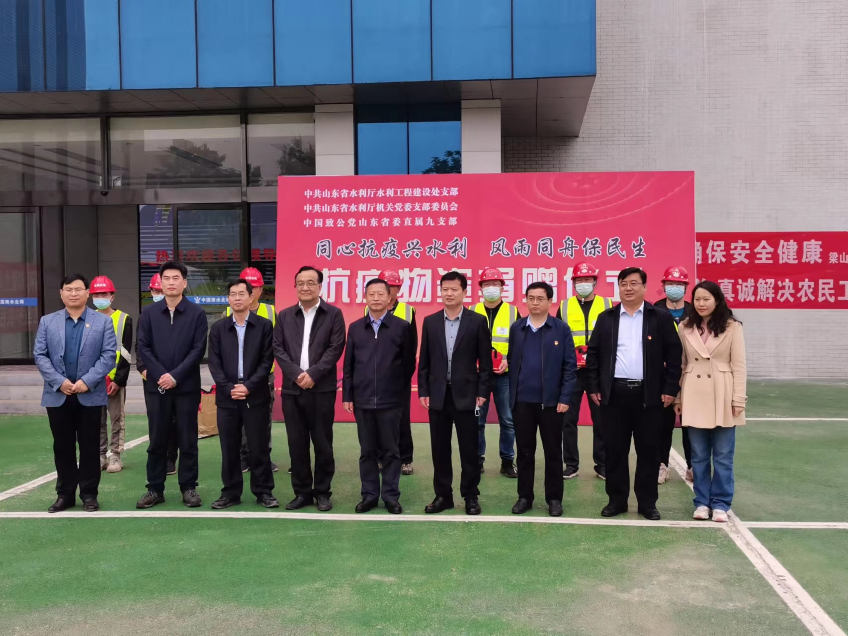 5月11日,省水利廳一級巡視員王祖利、致公黨山東省委直屬九支部主委、省水利廳水利工程建設(shè)處二級調(diào)研員王昊等一行蒞臨東平湖洪水外排河道應急疏通(濟寧梁山段)工程施工現(xiàn)場視察工程建設(shè)情況,并開展了 “同心抗疫興水利,風雨同舟保民生”主題黨日活動。
