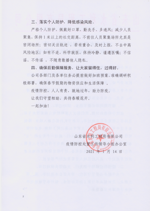 山東省水利工程局有限公司2021年春節(jié)“就地過年”倡議書